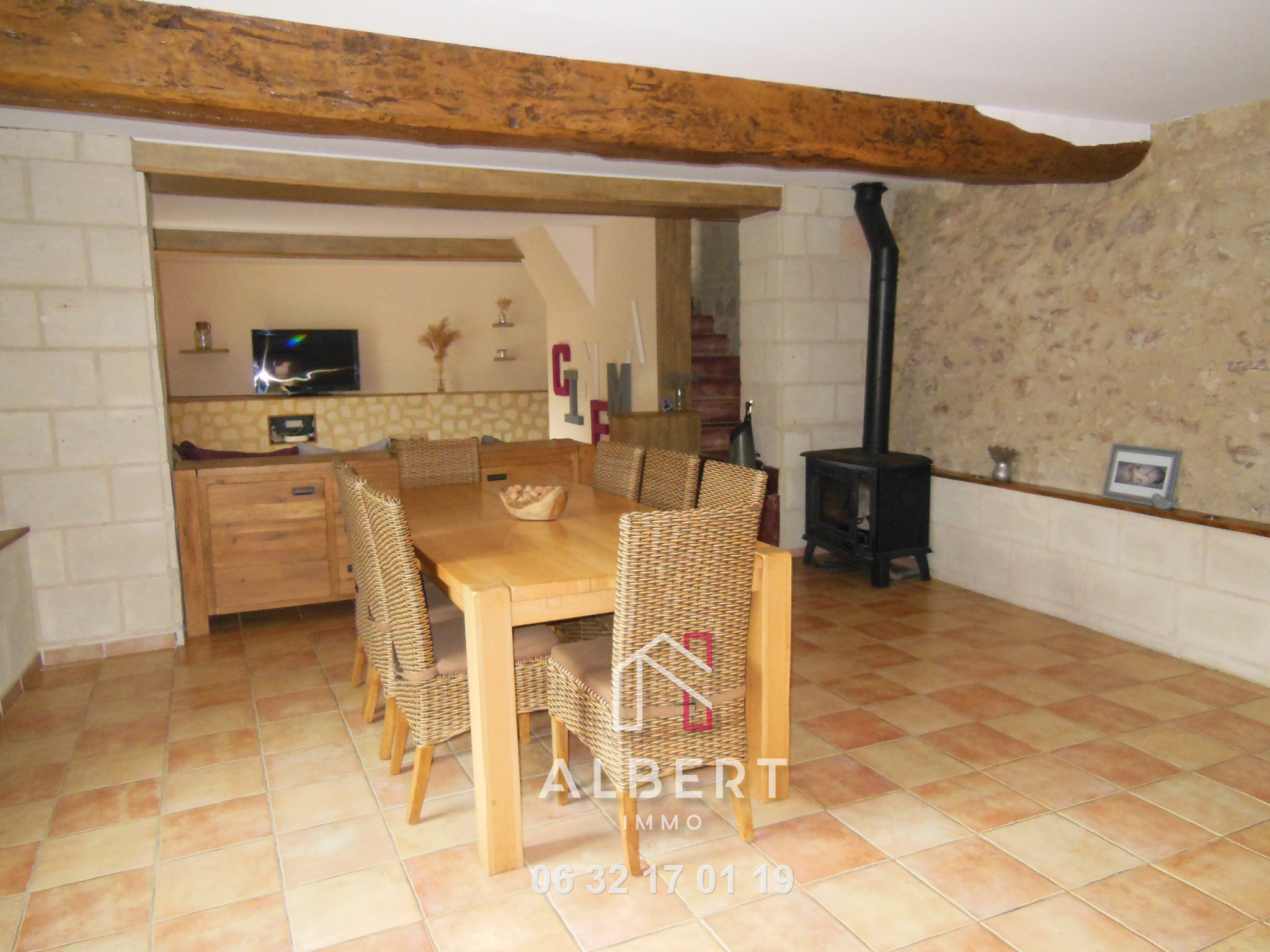 Longère en tuffeau de 130 m² rénovée comprenant au rez de chaussée une cuisine équipée de 30m² avec cheminée, un salon-séjour de 50 m² avec poêle à bois, salle de bains et wc. a l'étage, un palier dessert 3 chambres et un wc. Buanderie extérieure, jardin d'environ 1500m² avec caves dans le roc. Double vitrage, toiture en parfait état. Assainissement à revoir. CLASSE ENERGIE E référence NV830 Pour une visite contacter Nathalie Vincent au 0632170119
